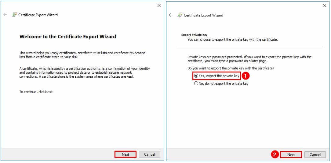 Bir sonraki adım Let’s Encrypt sertifikasını dışa aktarmaktır. Makalenin başında, özel anahtarın dışa aktarılamaması nedeniyle sertifikayı dışa aktaramadığımızı unutmayın. Şimdi seçeneği seçebilecek miyiz?
